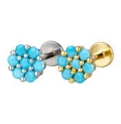 7 Mavi Pirinç Taşlı Çiçek Desenli Toplu Tragus Piercing